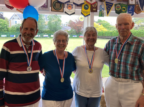 Bowling organisers Andy Browning and Duncan Pickering calculated the results based on the total number of shots over the five rounds of matches. They presented special jubilee medals to the winning teams.